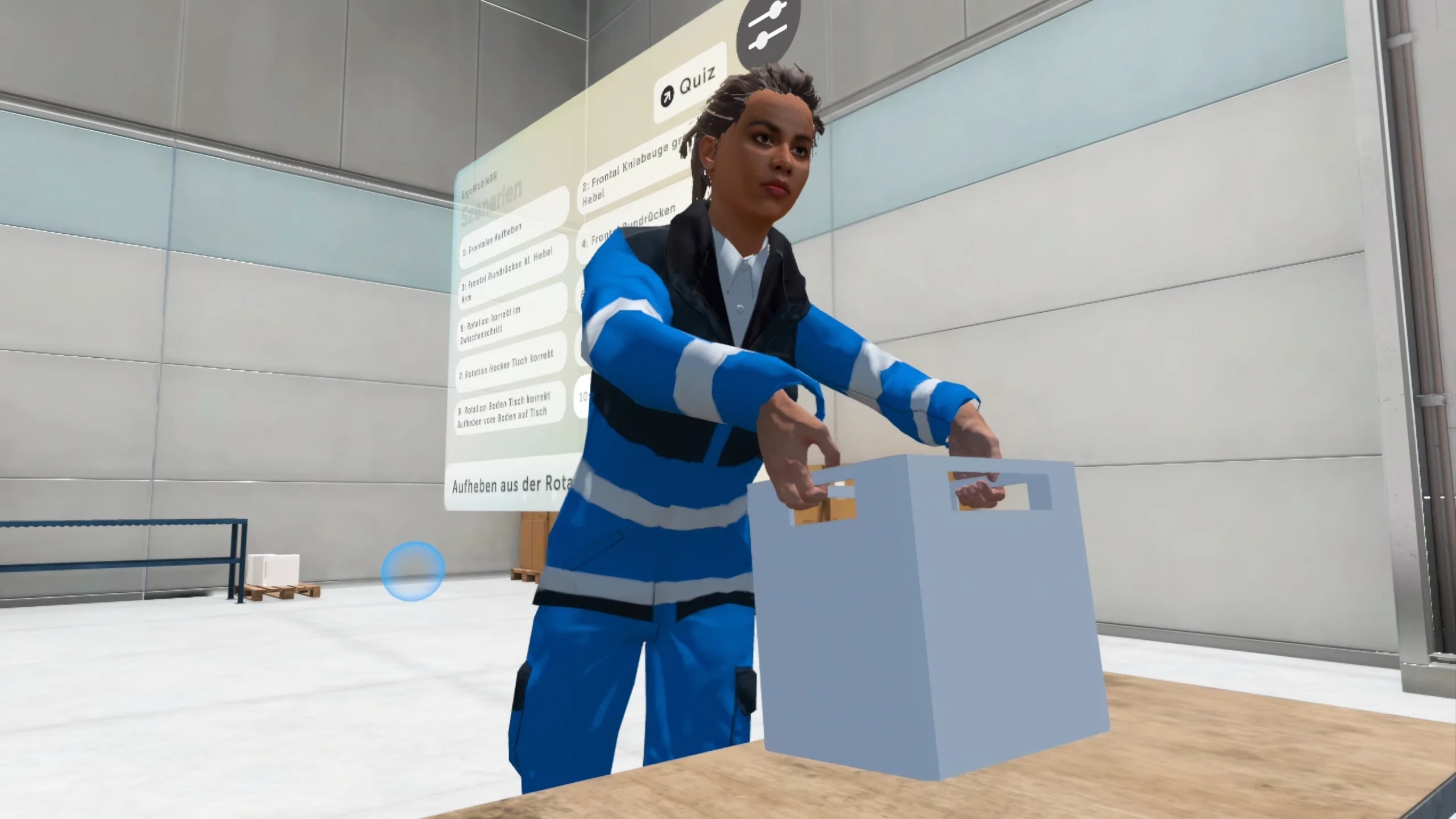 Ergonomic lifting is often taught primarily on a theoretical level in conventional instruction formats. In practice, however, learners frequently lack opportunities to rehearse movement patterns repeatedly under realistic conditions and to recognize poor posture immediately. At the same time, in-person training is difficult to standardize, resource-intensive, and provides only limited objective feedback. As a result, unfavorable leverage, a rounded back, or incorrect rotational movements often remain unnoticed in routine workflows—raising the risk of overload, musculoskeletal complaints, and long-term absence from work. Moreover, traditional settings make it challenging to demonstrate typical mistakes in a targeted way without unintentionally reinforcing incorrect technique.