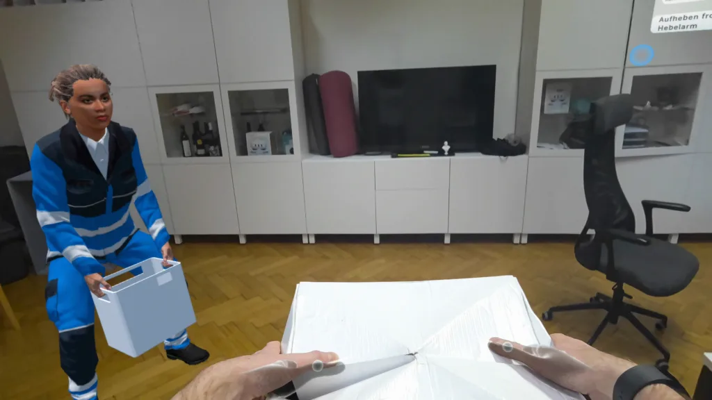 ErgoXR is an immersive XR application for professional training in ergonomically correct lifting and carrying techniques. It combines digital learning content with VR and mixed-reality training to teach movement patterns in a realistic way and reinforce them safely. Developed in collaboration with an ergonomics expert from AUVA, ErgoXR is built on motion-capture (MoCap) reference movements—capturing both correct execution and typical error patterns. The result is a standardized, practice-oriented training solution that can be flexibly integrated into workplace safety and health programs.